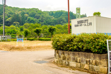 青い看板に従い、施設手前を左折して下さい。